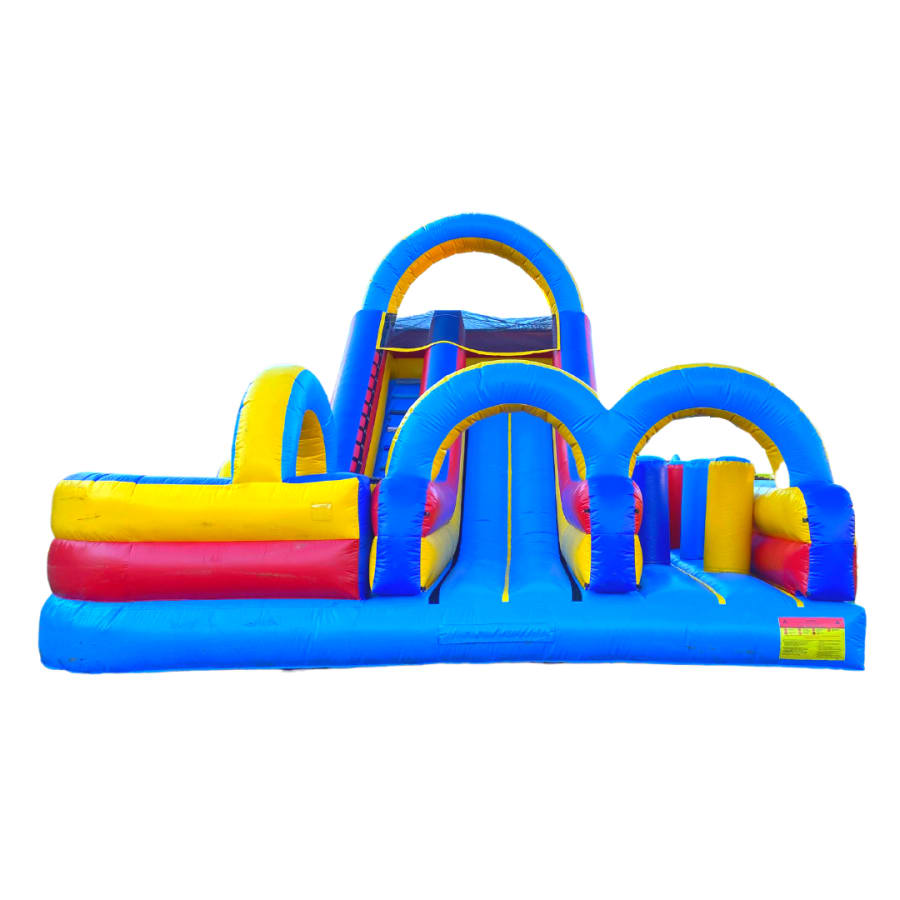 - Wrap around course with a ladder and a 15ft slide in blue, red, and yellow