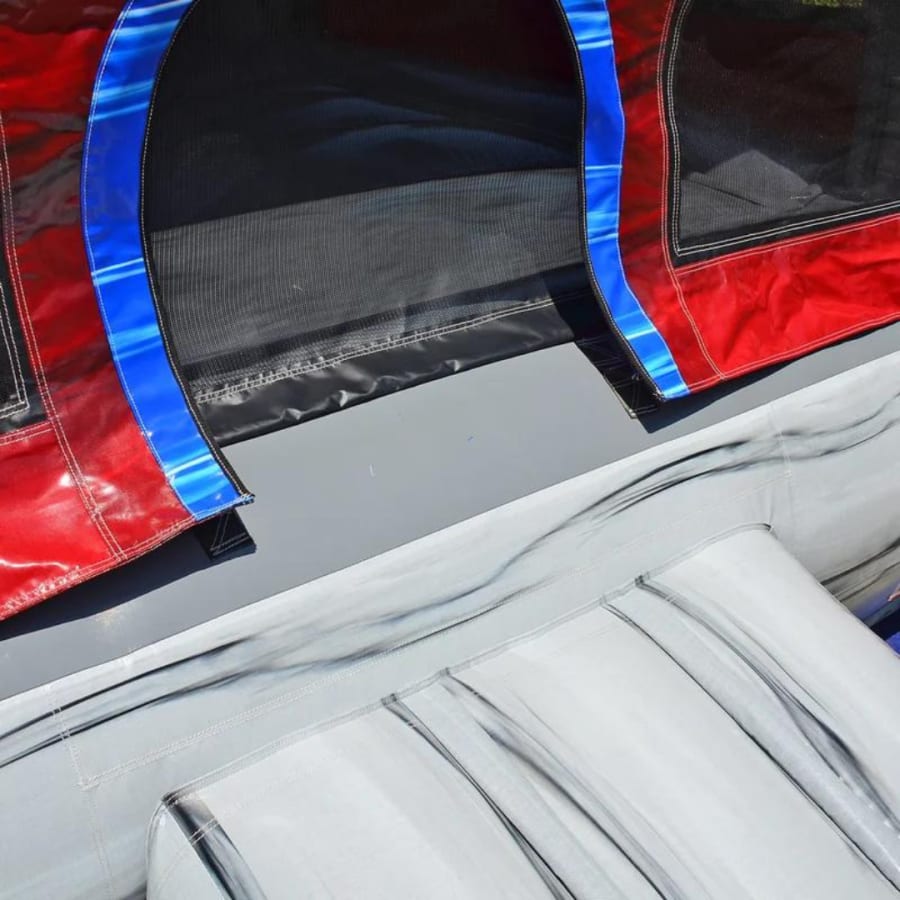 - Our Titanium Bounce House features a cool silver, blue, and red marble design that's perfect for any event (Especially Super Hero Themed events).