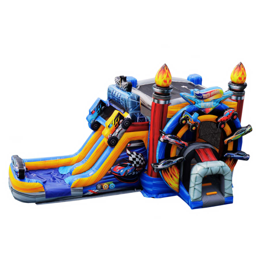 The Nitro Rush Combo Bounce House *DOUBLE LANE WET OR* in Atlanta, Decatur, South Fulton brings high-speed excitement to any outdoor event. Bold racing graphics, a roomy bounce area, and a fast dual-lane slide create nonstop action. This inflatable moves lines quickly and keeps kids engaged—perfect for competitive play and big crowds. 🎉💦