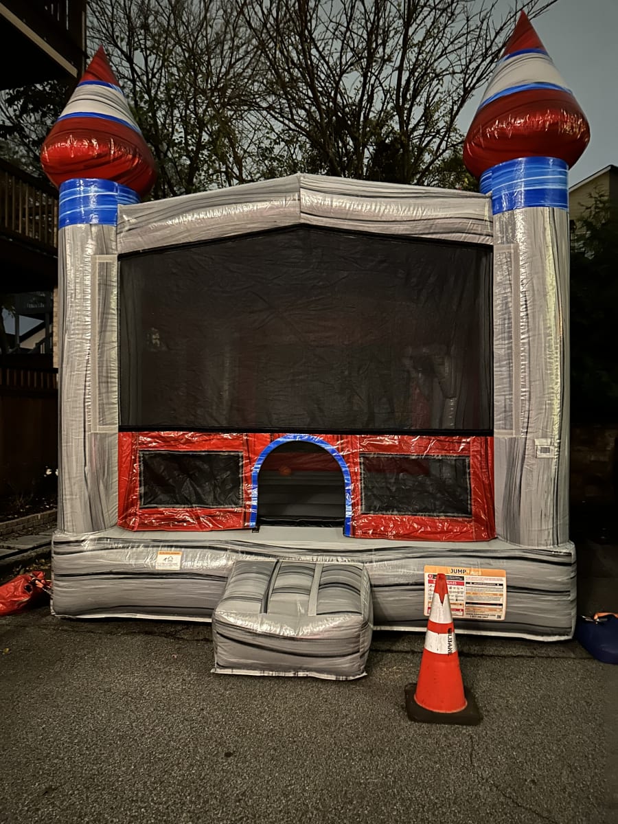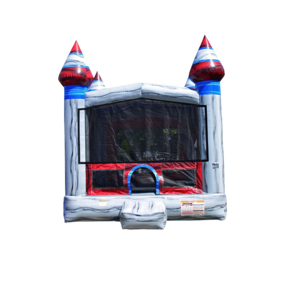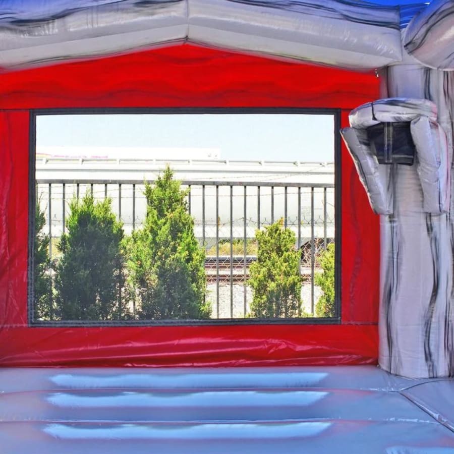 • Our Titanium Bounce House features a cool silver, blue, and red marble design that's perfect for any event (Especially Super Hero Themed events).