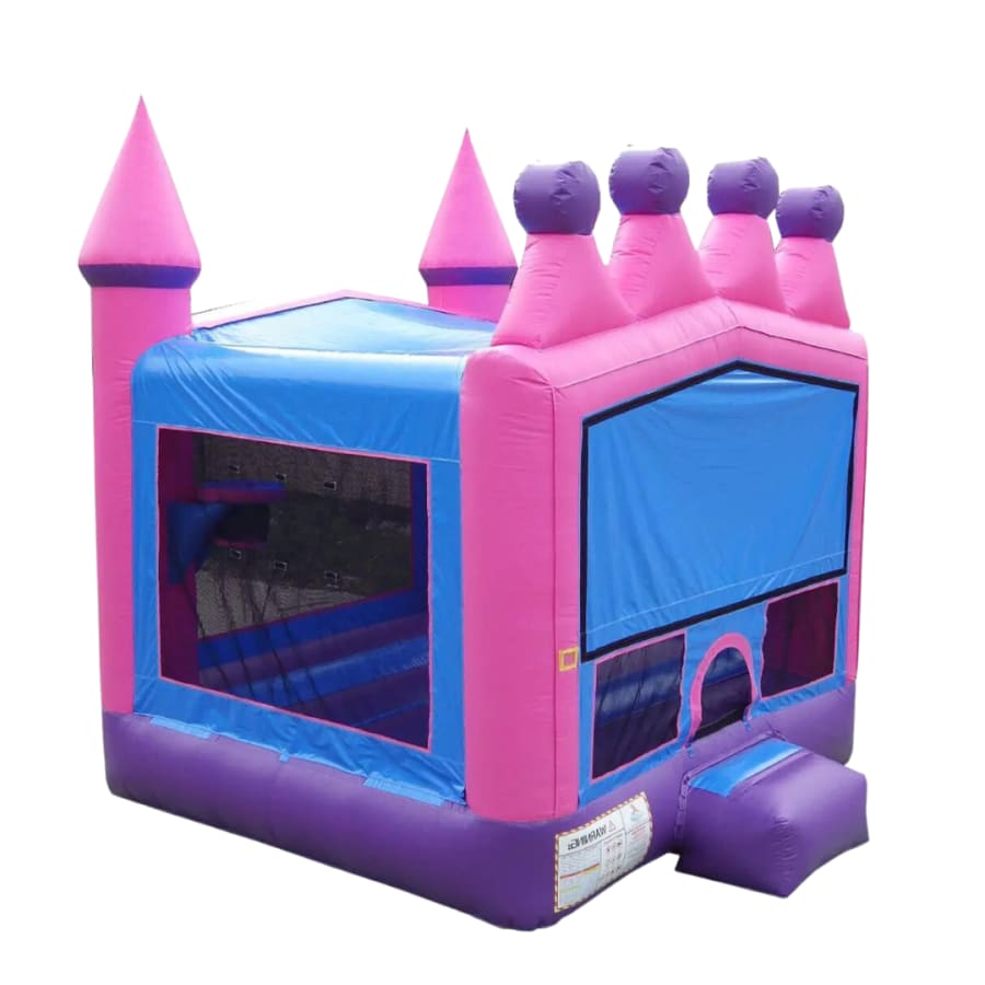 With its spacious 13' x 13' size, the Tiara Palace Bounce House provides plenty of room for kids to jump, bounce, and let their imaginations run wild. The vibrant pink, purple, and blue colors, along with the princess crown design atop, make this bounce house a true standout.