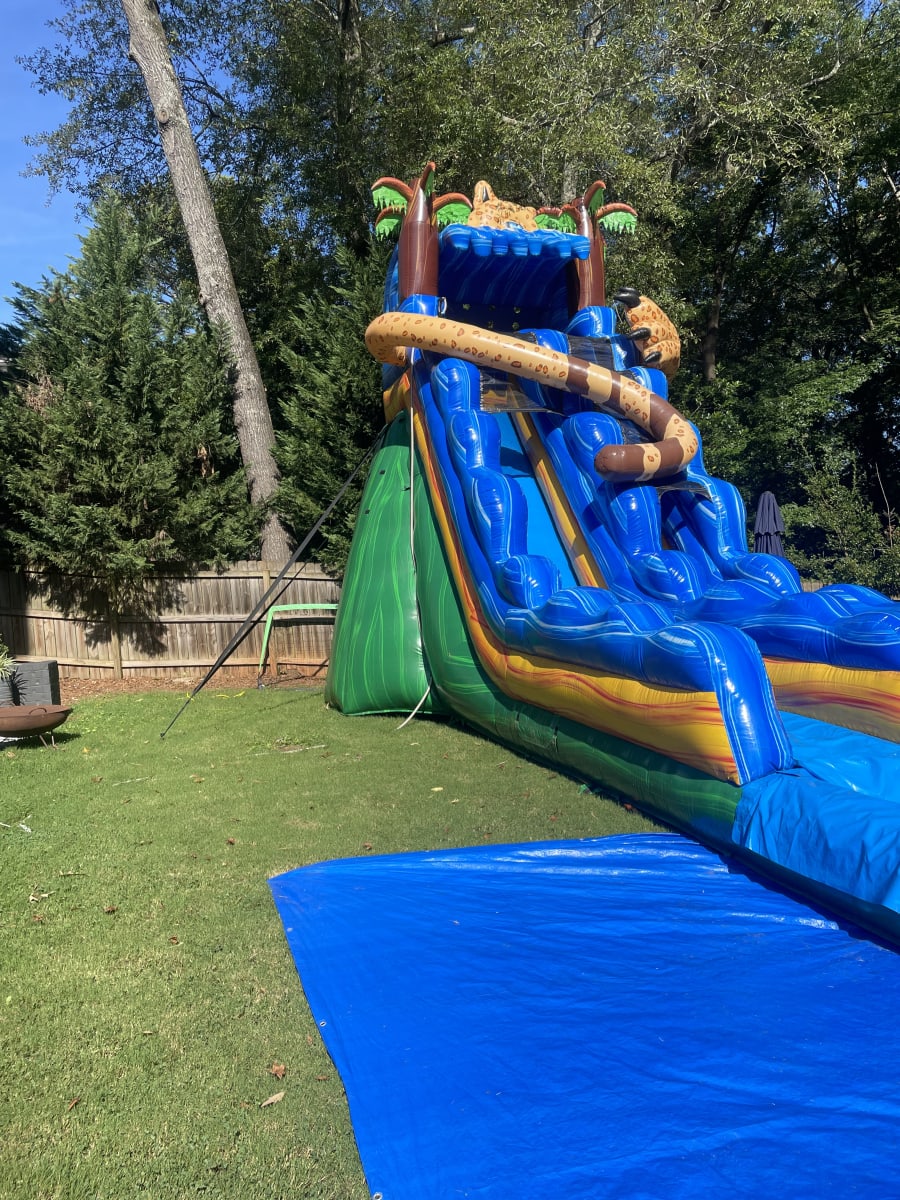 We proudly offer our water slide rental in Atlanta, Chamblee, Dunwoody, Powder Springs, and surrounding areas. No matter where you are, we bring the fun to you, transforming any backyard or venue into a water wonderland. Get ready to beat the heat and make unforgettable memories with our Jungle Splash Waterslide.